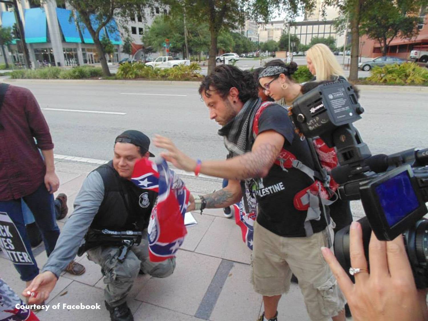 TAMPA – Last Saturday, a small group of protesters traveled to the Brooksville courthouse, intent on setting fire to the Confederate and American flags. The group that calls themselves the Uhuru Solidarity Movement, were met by dozens of protestors who prevented the burning and eventually forced the group to pack up and leave the area. ORIGINAL VIDEO REPORT