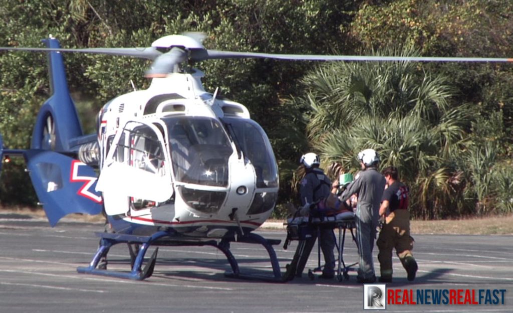 The injured woman was transported to a local hospital for treatment of minor injuries, according to sources.